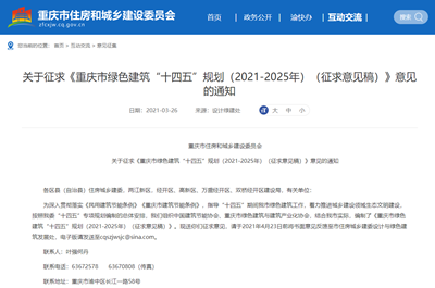 關于征求《重慶市綠色建筑“十四五”規劃(2021-2025年)(征求意見稿)》意見的通知
